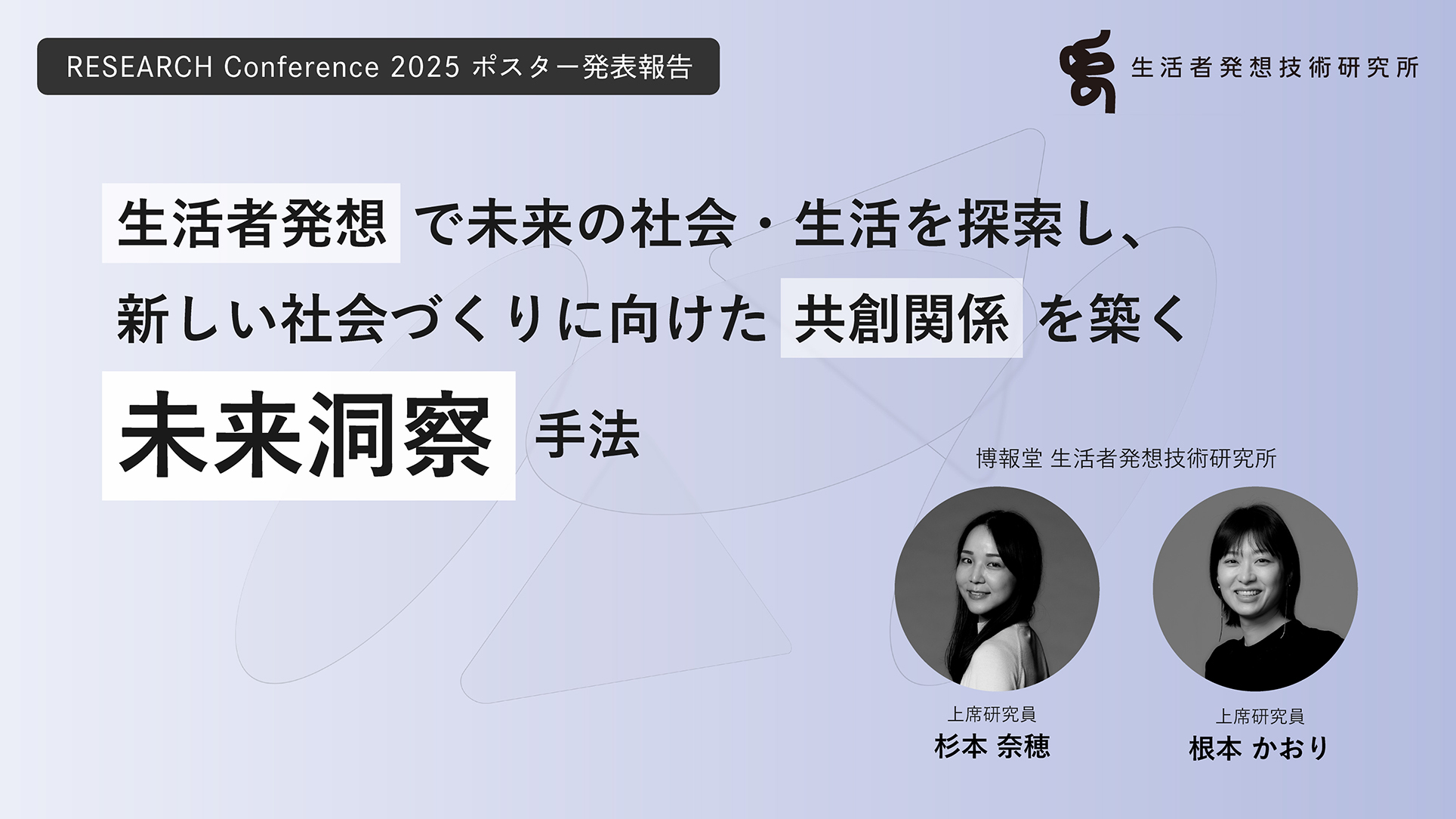 クライアント企業の生活者発想を推進するための研究開発を目的に設立された専門組織です。「未来生活者発想」をコンセプトに、「生活者発想経営」「フォーカス型生活者洞察」「生活者心理・行動」「ウェルビーイング社会の共創」「生活者発想に基づく創造性」等に関する、研究・開発・教育・発信を行っていきます。
