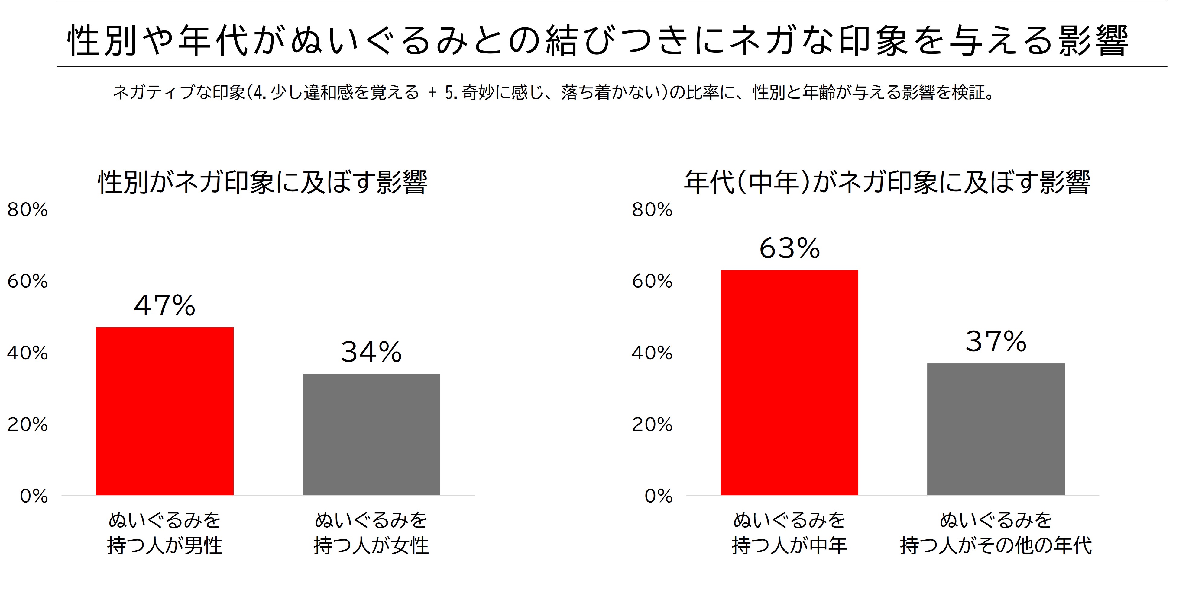 2ぬいぐるみを持っている人が、中年か、あるいは他の年代かで印象が変わるのか?