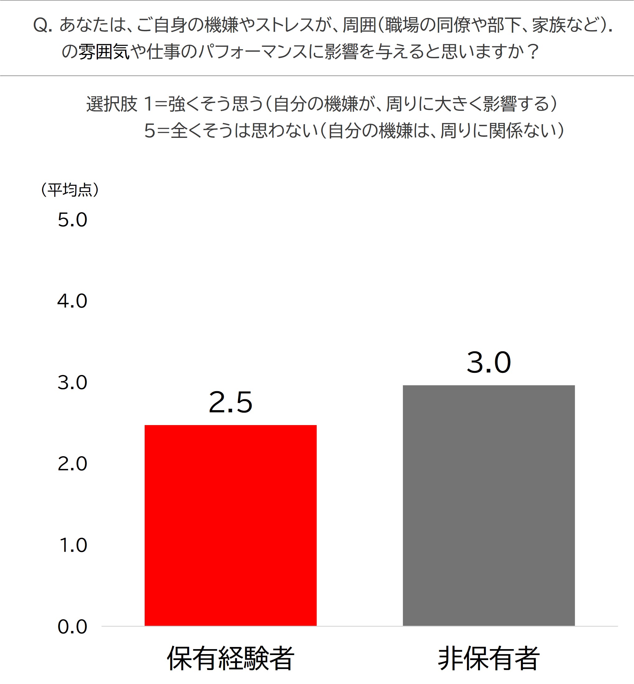 調査で示したように、ぬいぐるみ非保有者は「自分の機嫌が周囲に与える影響」への認識が低い傾向にあります。管理職や父親の「無自覚な不機嫌」は、職場や家庭に伝播し、生産性の低下や不和を生むこともあるでしょう。これは社会全体が支払うべき「不機嫌のコスト」と言えるでしょう。