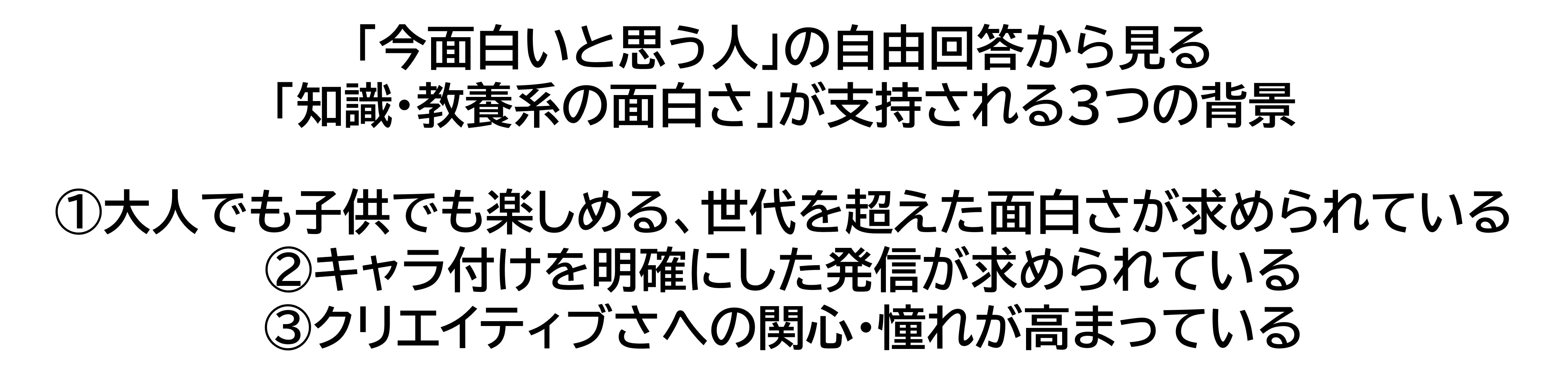 ぱっと見てわかるような面白さが人気を集める反面、「知識・教養系」の面白さがランクインした背景としてどんなことが考えられるでしょうか。