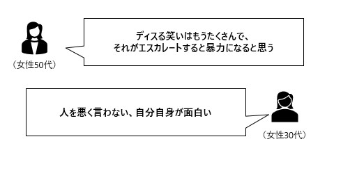 従来の「いじり」や「ディスり」を笑いの手法とするスタイルへの違和感や拒否感についての声が聞かれました。パワハラやセクハラなどへの意識が高まるなかで、テレビでも相手を叩いたり、過剰にいじったりする演出は減り、生活者の間にも「言葉の暴力は良くない」という考えが広がっています。だからこそ、相手を傷つけず、「なるほど」と知識の肥やしとなるような知的な笑いが、より求められているのではないでしょうか。