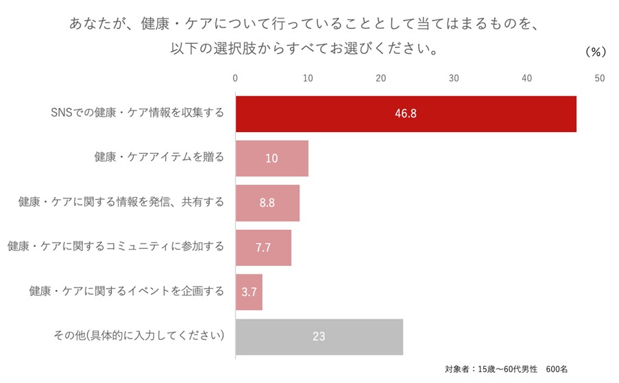 前向きな兆しは定性的に見られるものの、より男性の健康・ケア意識の実態に迫るため、男性600名に対して生活者調査を行いました。(調査概要は文末に記載)
