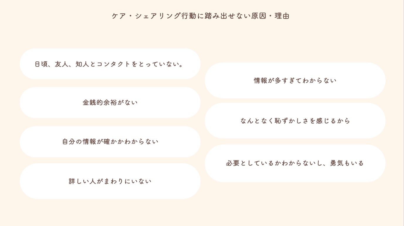 ケア・シェアリングをしたい感情、逆に踏み出せない理由から、動機となる個人の感情にも目を向けることができます。